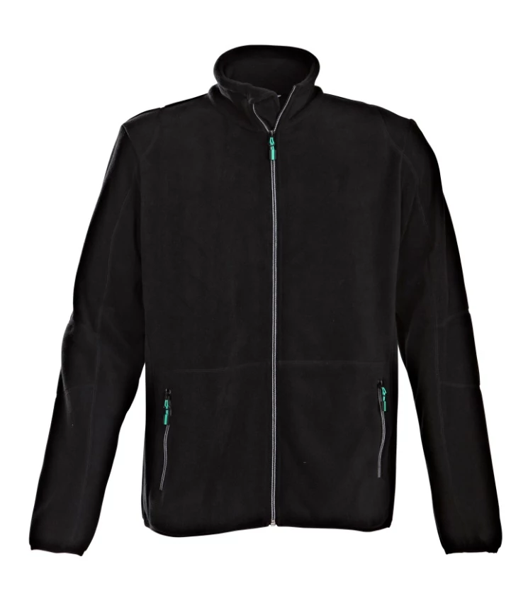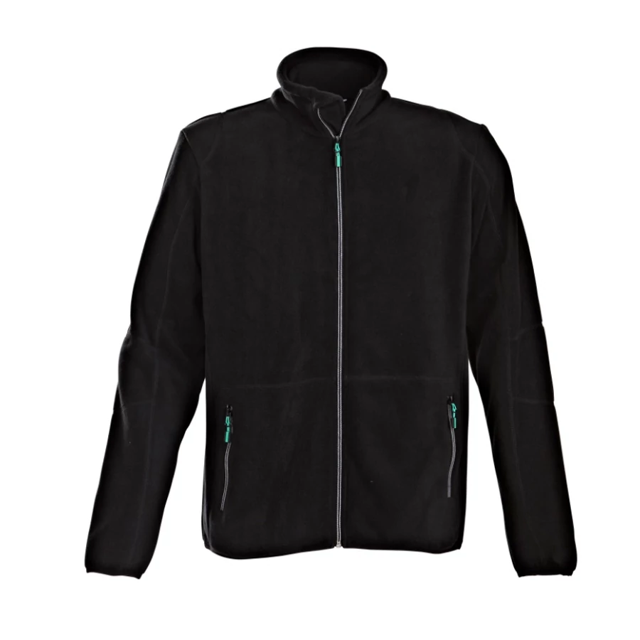 Férfi polár kardigán, kétszínű cipzárral elöl és a zsebeken.Díszítővarrások a zsebek felett.